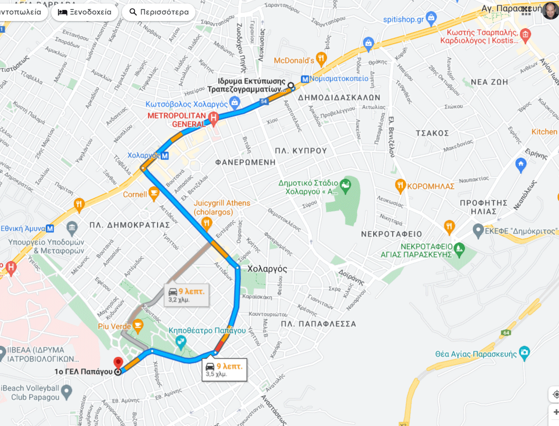 Επειδή γίνονται έργα απέναντι από το Υπουργείο Εθνικής Άμυνας, στη συμβολή Μεσογείων και Κύπρου (είναι ο δρόμος που οδηγεί απευθείας στο 1ο ΓΕΛ Παπάγου) σας προτείνουμε δύο εναλλακτικές διαδρομές.