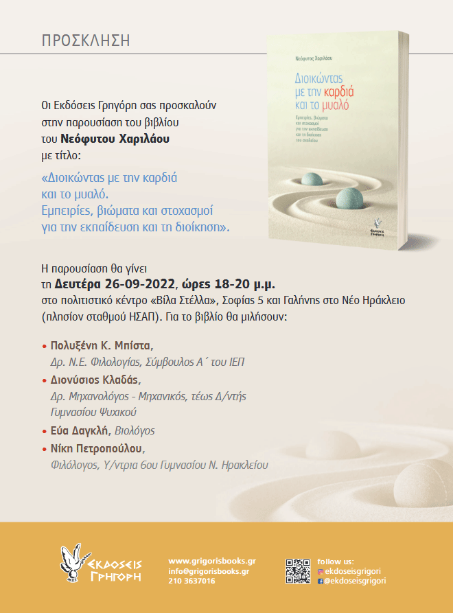 Παρουσίαση βιβλίου Posted on 05/09/2022 by vasdim Πρόσκληση για την παρουσίαση του βιβλίου του εκλεκτού μας μέλους Νεόφυτου Χαριλάου. Κοινοποιήστε: Μοιραστείτε στο X(Ανοίγει σε νέο παράθυρο) Χ Mοιραστείτε στο Facebook(Ανοίγει σε νέο παράθυρο) Facebook Μου αρέσει! Φόρτωση...