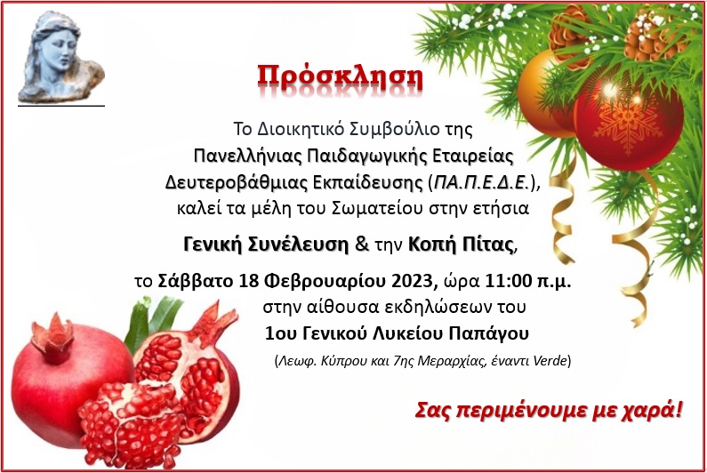 Γ.Σ. και Κοπή πίτας Posted on 14/02/2023 by vasdim Ελάτε για ένα ευχάριστο πρωινό με καφέ, γλυκίσματα κ.ά. (Ο καιρός προβλέπεται να είναι υπέροχος). Κοινοποιήστε: Μοιραστείτε στο X(Ανοίγει σε νέο παράθυρο) Χ Mοιραστείτε στο Facebook(Ανοίγει σε νέο παράθυρο) Facebook Μου αρέσει! Φόρτωση...
