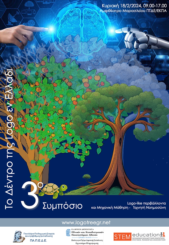 Το 3ο Πανελλήνιο Επιστημονικό Συμπόσιο “Το Δέντρο της Logo εν Ελλάδι” συνδιοργανώνεται από την Πανελλήνια Παιδαγωγική Εταιρεία Δευτεροβάθμιας Εκπαίδευσης (ΠΑ.Π.Ε.Δ.Ε.), το Εργαστήριο Πληροφορικής του ΠΤΔΕ του ΕΚΠΑ και το STEM Education. Καλούνται τα μέλη της εκπαιδευτικής και ερευνητικής κοινότητας να εκδηλώσουν ενδιαφέρον υποβολής εισηγήσεων (ομιλιών, εργασιών και εργαστηρίων). Το Συμπόσιο θα διεξαχθεί δια ζώσης στο αμφιθέατρο του Μαρασλείου του ΠΤΔΕ του ΕΚΠΑ (Μαρασλή 4, στάση μετρό Ευαγγελισμός, Αθήνα) την Κυριακή 18 Φεβρουαρίου 2024.